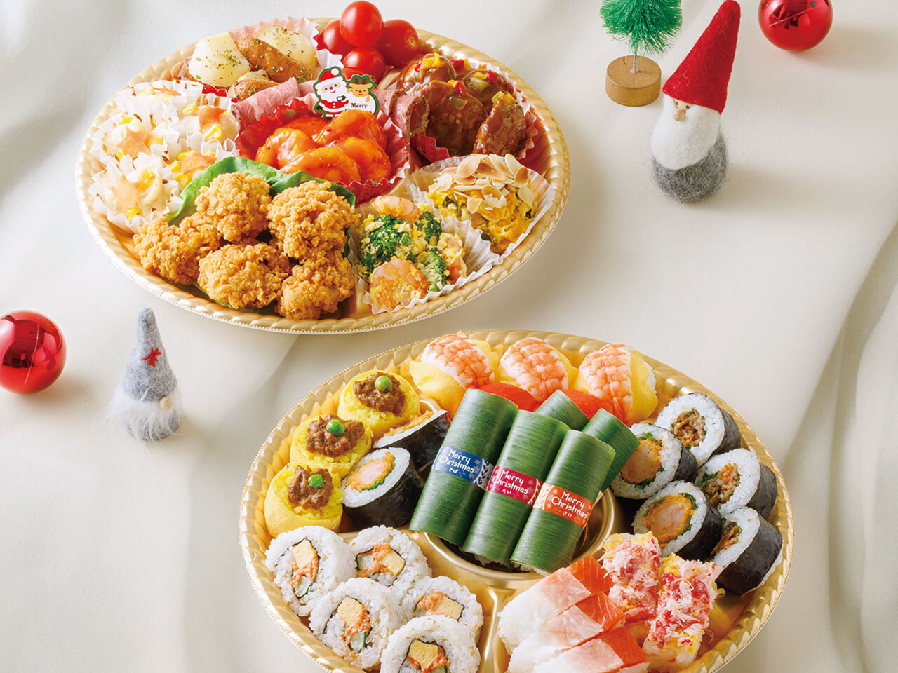 クリスマス限定のお寿しやハンバーグ、グラタン、サラダなど