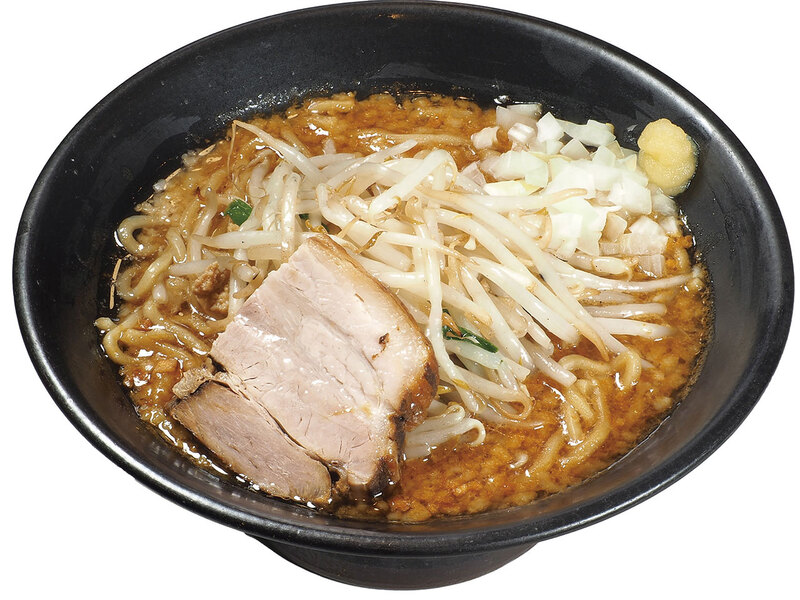 豚ゲンコツを12時間煮込み、臭みを完全にとった豚骨スープと秘伝の醤油ダレ、特注の多加水熟成真空麺を合わせた岩本屋定番、背脂入豚骨醤油味。