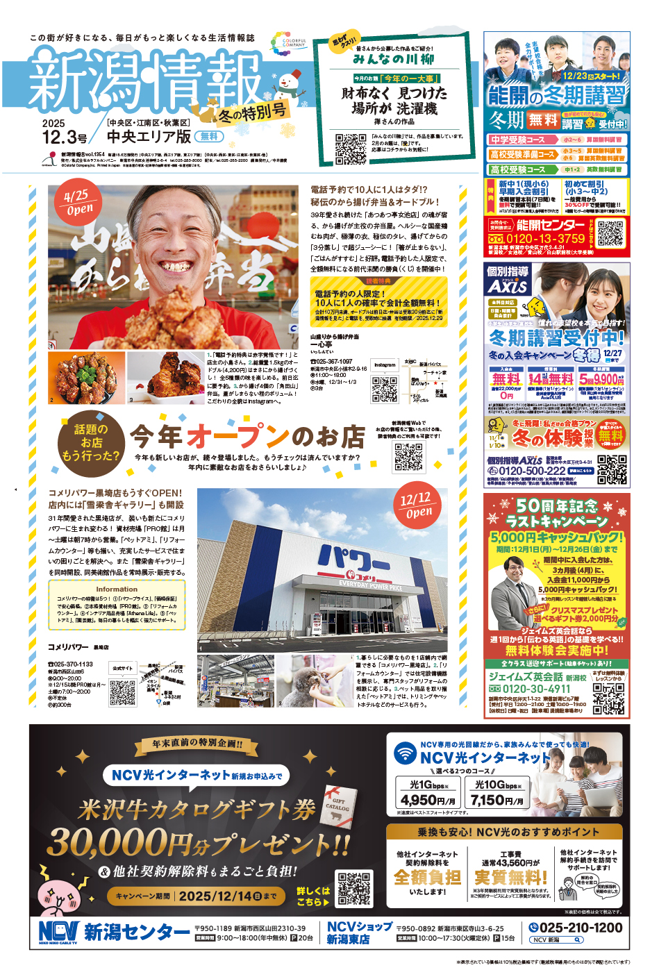 カラフルカンパニーの発行している媒体一覧。フリーマガジン『新潟情報』など、食べる、飲むといった飲食情報はもちろん、その他思わずまちに行きたくなるような情報もりだくさん! 掲載されているお店の一覧や、お得なクーポンを今すぐチェック!